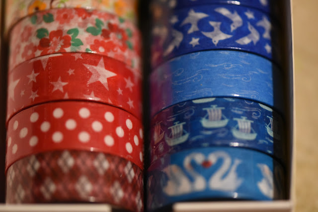 Hello! We almost are on December so I found this case full of 20 different types of tape online and I decided to get them. The colors are bright and the designs are super cute to wrap the gifts. They are useful to use throughout the year. The most important is that you can get them on Amazon. No need to go to any store yet. I really like them. I highly recommend them!/